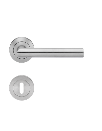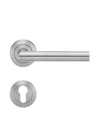 Drücker-Rosettengarnitur Rhodos ER28 DIN R ohne Schlüsselrosette Edelstahl matt KD Basic TS 45mm